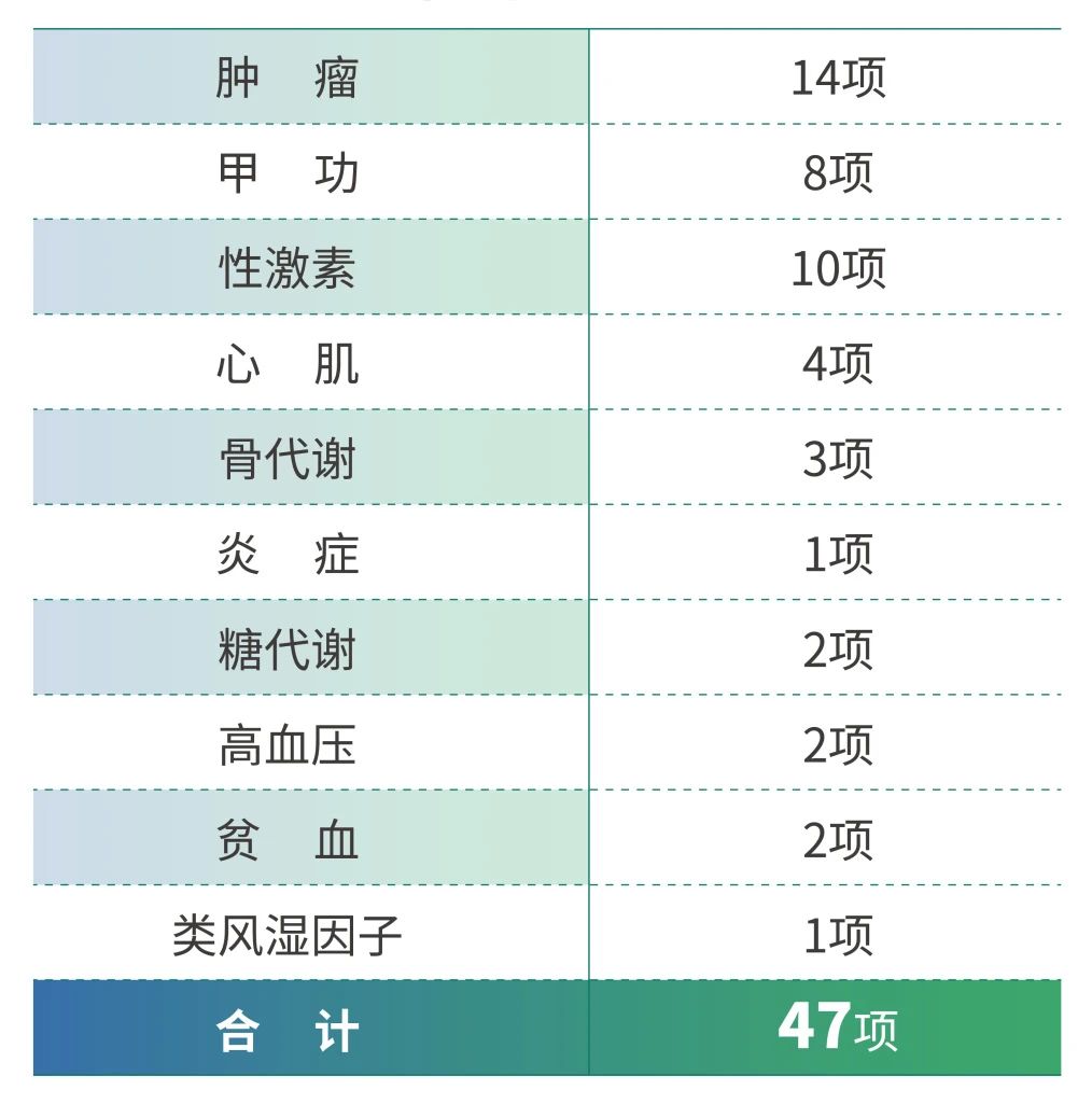 本次獲證產(chǎn)品包括腫瘤標(biāo)志物、甲狀腺功能標(biāo)志物、性激素標(biāo)志物、心肌標(biāo)志物、骨代謝標(biāo)志物、炎癥標(biāo)志物、糖代謝標(biāo)志物等,全線高質(zhì)量產(chǎn)品為疾病診保駕護(hù)航。