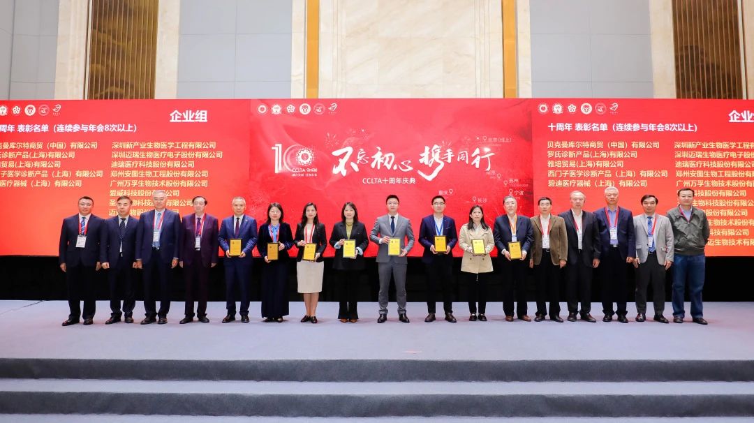 大會(huì)期間,中國(guó)醫(yī)學(xué)裝備協(xié)會(huì)檢驗(yàn)醫(yī)學(xué)分會(huì)第三屆委員會(huì)第三次全體委員會(huì)議同步召開,九強(qiáng)生物董事長(zhǎng)鄒左軍先生出席并上臺(tái)領(lǐng)取十周年企業(yè)感謝狀。CCLTA迎來十周年,在深耕學(xué)術(shù)、以發(fā)展為中心的精耕理念下,實(shí)現(xiàn)檢驗(yàn)醫(yī)學(xué)事業(yè)的大步拓新。